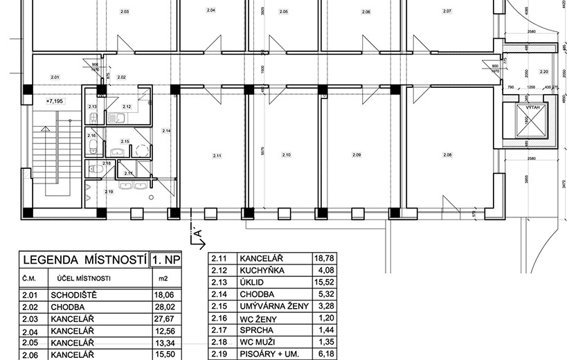Nástavba dvou podlaží a přístavba výtahové šachty administrativní budovy v Nedvězské ulici na Praze 10. Nosný stěnový systém a omezený rozpočet značně omezují zadání, nicméně jednoduchou barevnou kombinací, nepravidelně vystřídaným rytmem otvorů ve fasádě a použitím obkladu z tahokovu se podařilo alespoň částečně oživit vzezření v principu "nudné administračky."