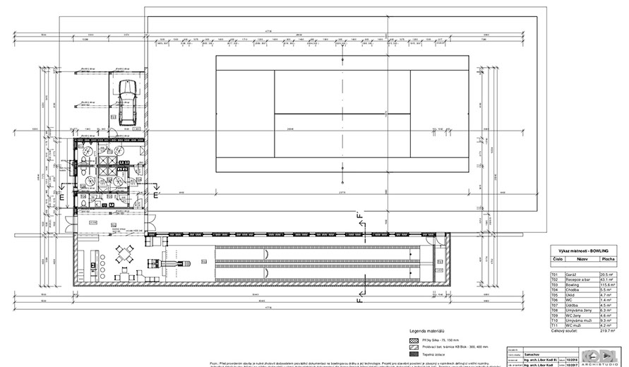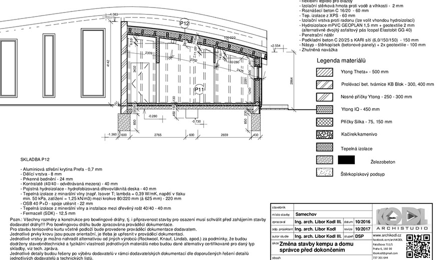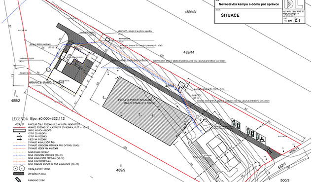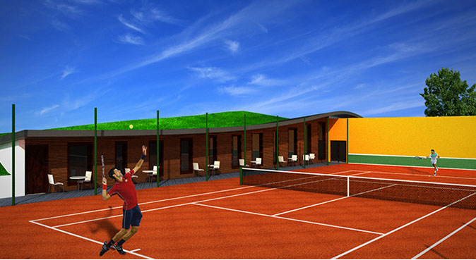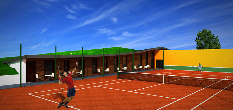Původní záměr skromné chatičky na samotě u lesa vzal rychle za své, když se neslučoval s výkladem stavebního úřadu, co přesně je přípustné pro hromadnou rekreaci. Hromada lidí na chatě evidentně ne. A tak se přes kemp a dům správce vyvinul až do plnohodnotně vybaveného sportovního areálu na 1 ha, kde nechybí krytý bazén tvořený monolitickou železobetonovou konstrukcí zapuštěnou do svahu, který svým funkcionalistickým vzhledem kontrastuje rodinnému domu správce, jenž musel podléhat nesmyslným regulativům, tenisový kurt se zázemím a bowlingová hala s občerstvením...