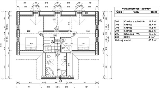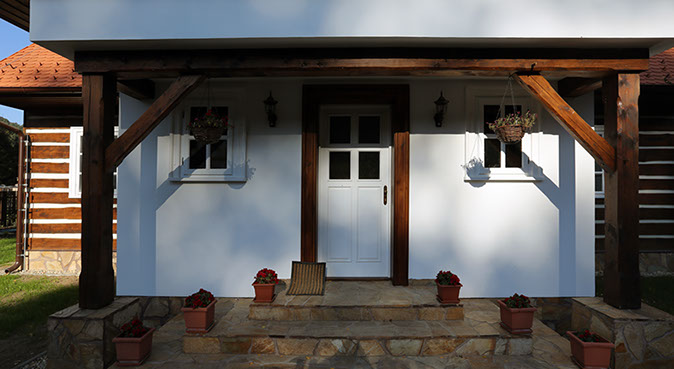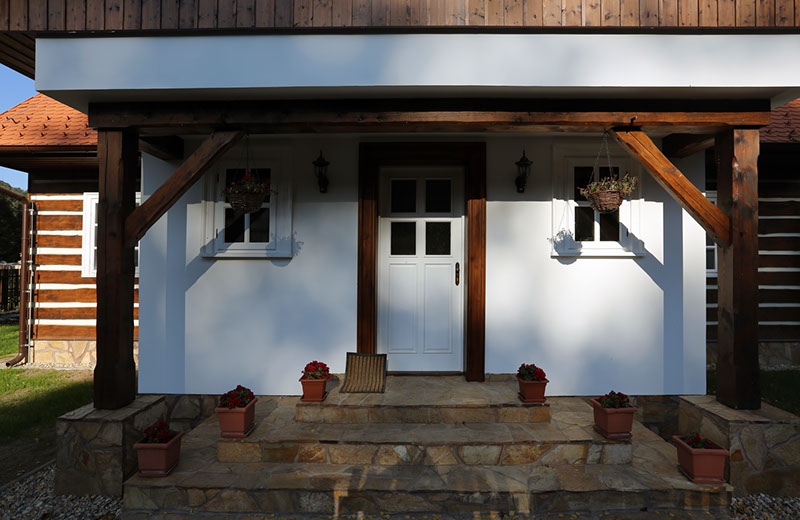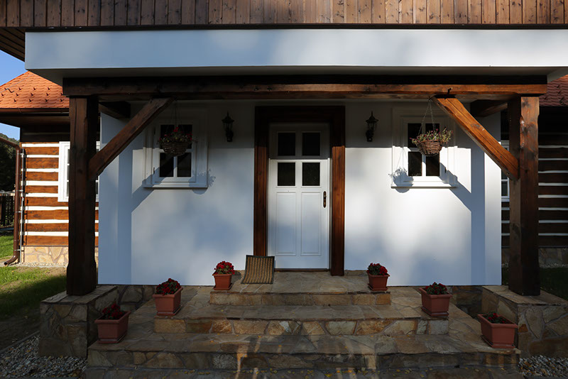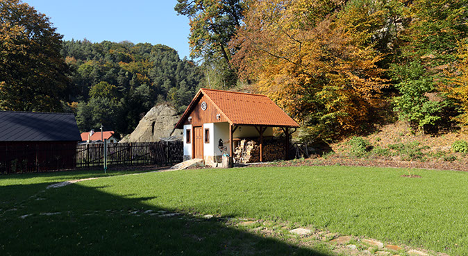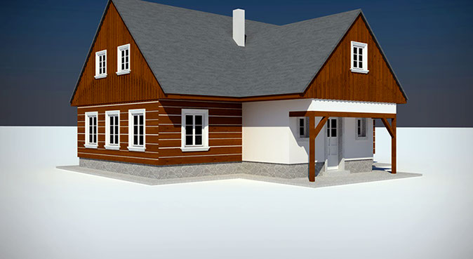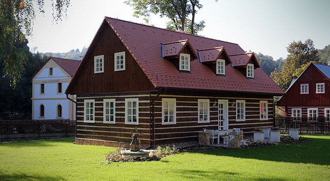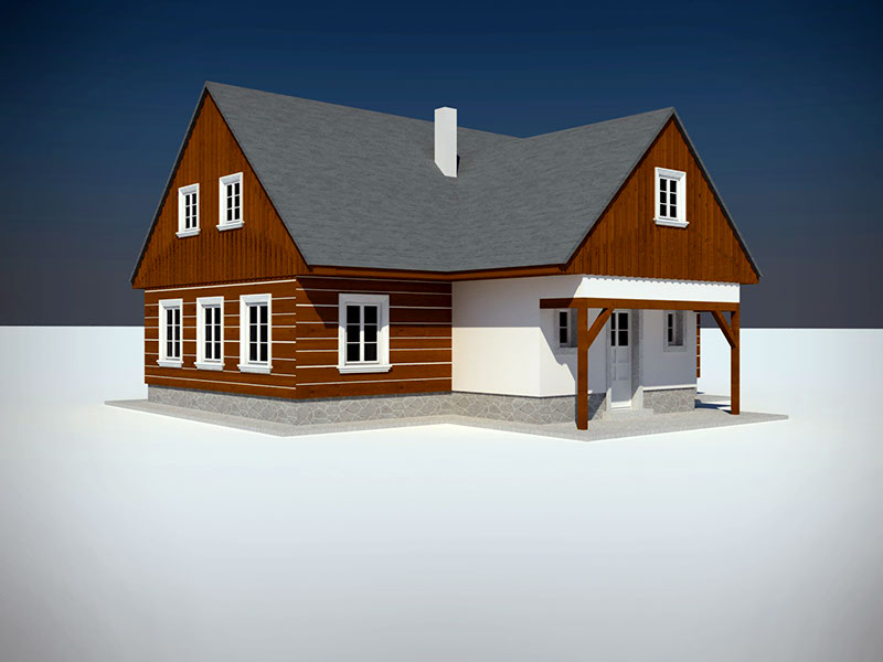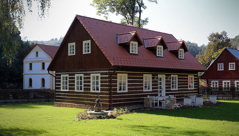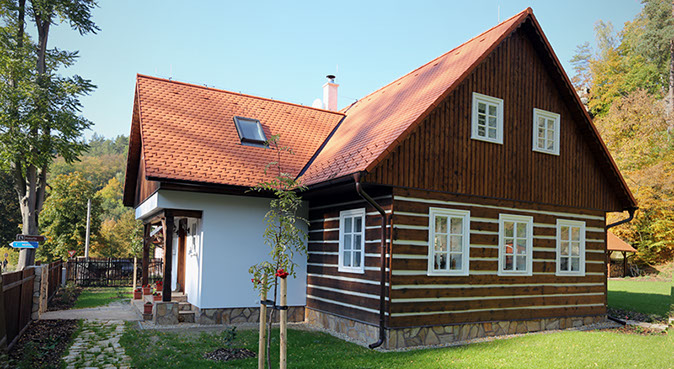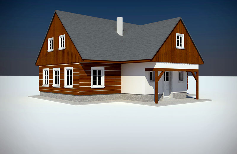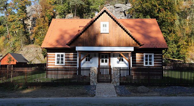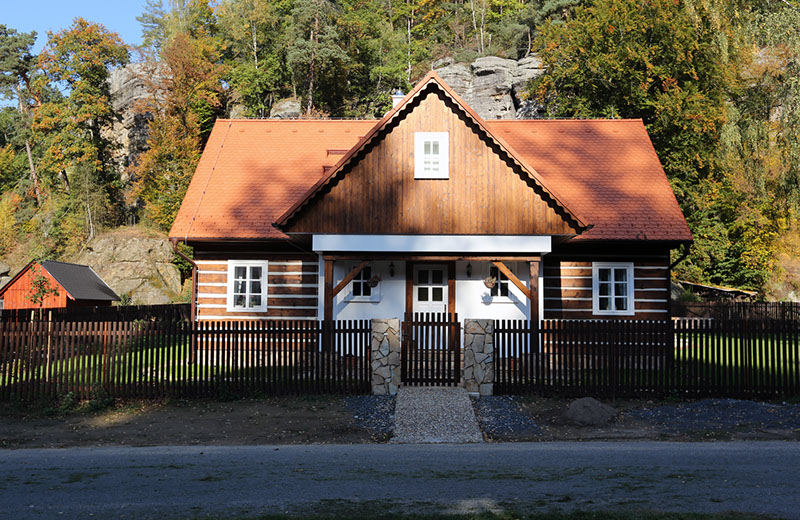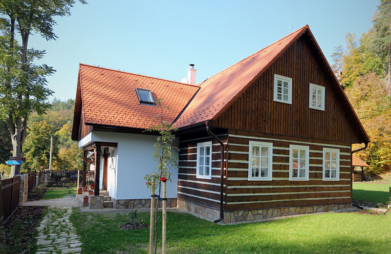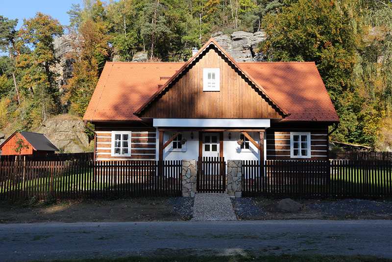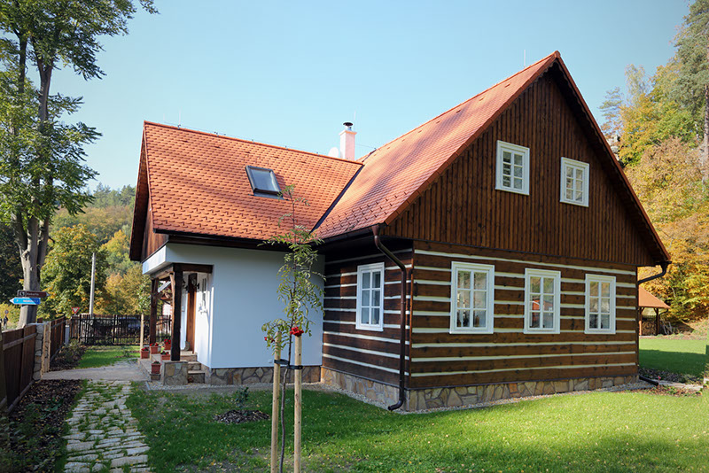 I druhá roubenka v CHKO Kokořínský důl svým vzhledem dokonale zapadá do krajiny. Zároveň splňuje všechny přísné regulativy pro výstavu na Kokořínsku. Aby bylo dosaženo i přísných tepelných norem pro RD, je narozdíl od sousedního domu požita technologie sendvičového zdiva. Nosná část je z keramických tvárnic, které jsou posléze zateplené a pobité fošnami imitujicími roubení.