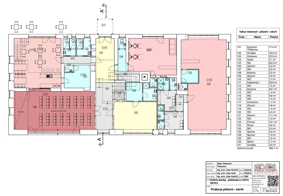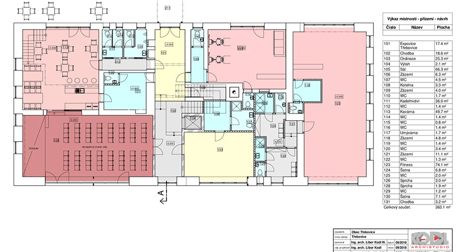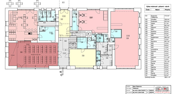 Dále nechybí víceúčelový sál přes dvě patra, ,„Třebovice coffee“.